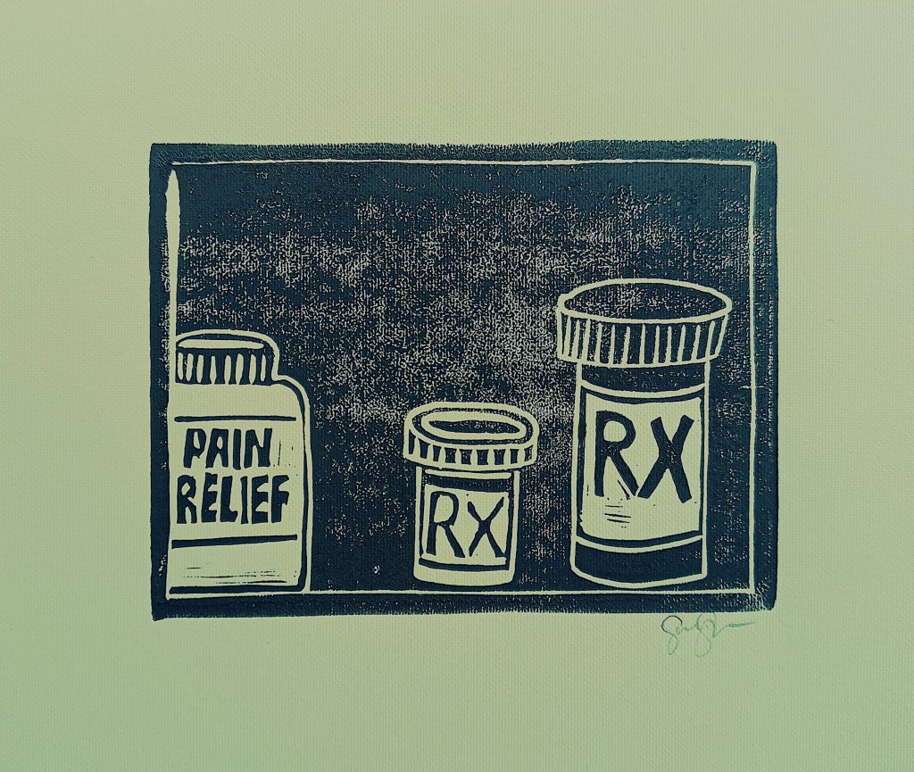 I made this print after another round of appointments with my medical team and returning to more prescriptions for my chronic health condition. I felt frustrated that I had to add more pills to my daily pile.